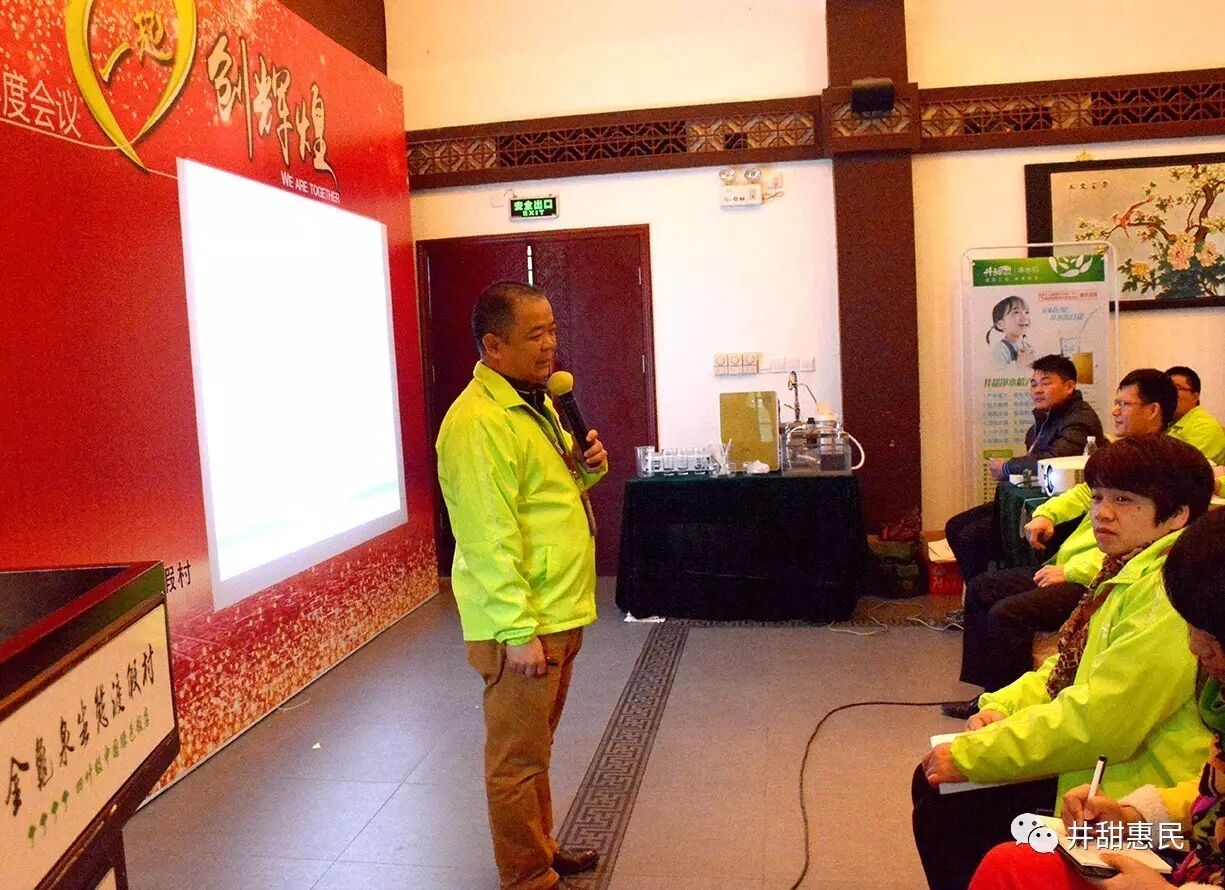 本次会议主要是对于一年来井甜惠民推广商们对于净水机的爱心推广,装机服务心得以及工作中的不足进行一些总结和对于来年工作的展望。