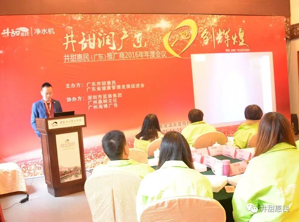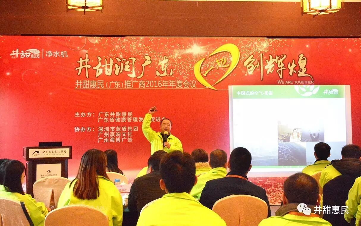 通过一年来的推广工作,推广商们体会到了推广工作中的艰辛和欣慰;不解理和感谢。这其中主要体现在装机前和装机后。为了来年能让推广商们和用户们都能感受到始终如一的良好体验,通过总结,我们知道主要问题在于装机之前用户们出于对井甜惠民这样的推广方式的迷惑不解理的一种自我保护。这当然可以解理。一方水土养一方人,各地风俗习惯,言语风气都有所不同。对于我们工作的理解度也会有所不同。但是,对于健康的要求却是高度统一。所以,我们应当因地制宜,找到最适合当地的推广方式,以求尽最大努力,把健康覆盖到所代理区域的最大面。因此,进广东省总代理在本次会议给我们带来了适用于广东用户的推广战略方案