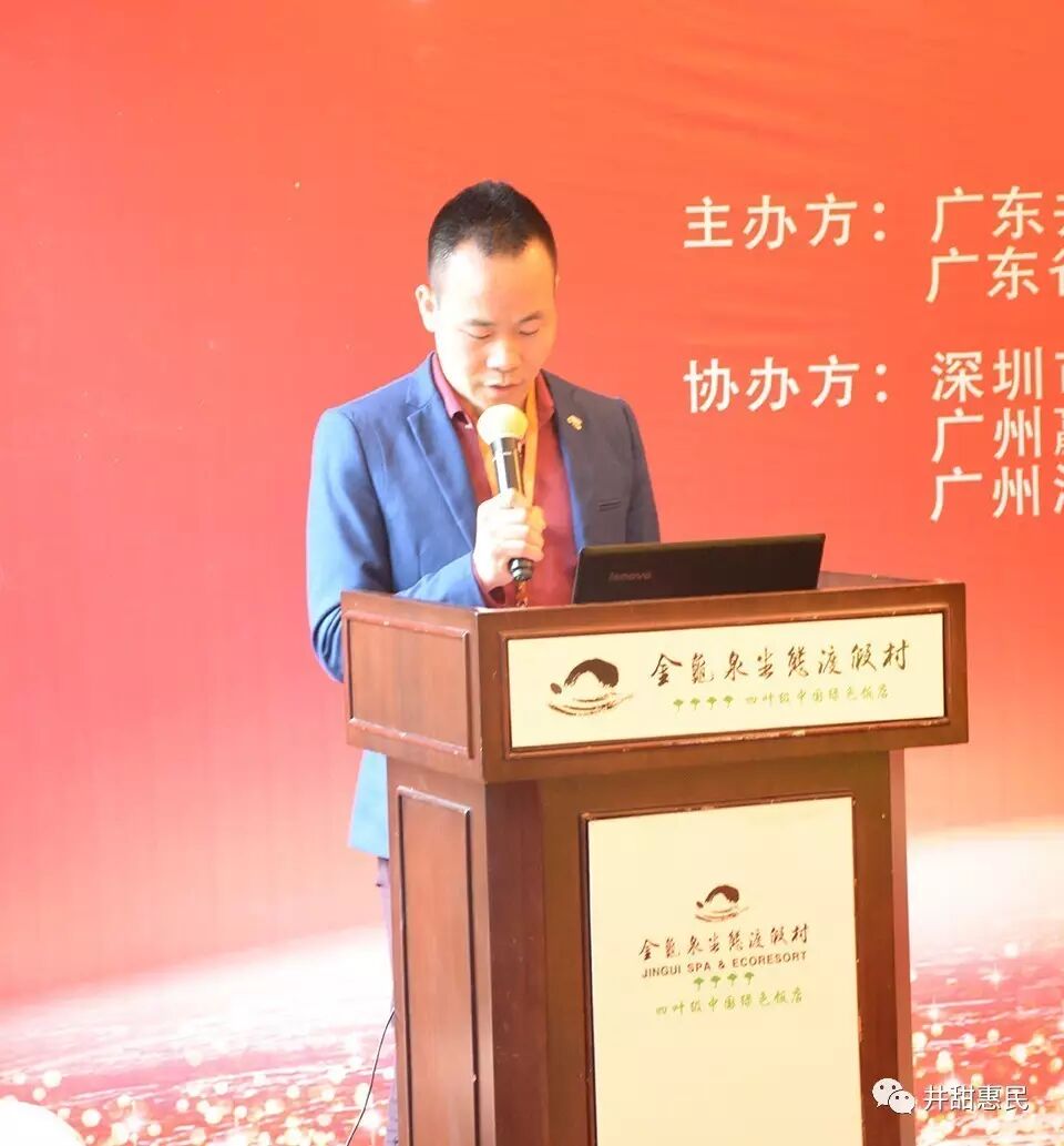 井甜润广东,17(一起)创辉煌。由广东井甜惠民;广东省健康管理发展促进会主办,深圳市蓝盾集团;广州赢响文化;广州海博广告协办的井甜惠民(广东)推广商2016年年度会议于2017年1月14-15日在广东清远市佛岗金龟温泉度假村举行。参会的有来自井甜惠民广东省各级代理,以及广东公司的各位工作人员。