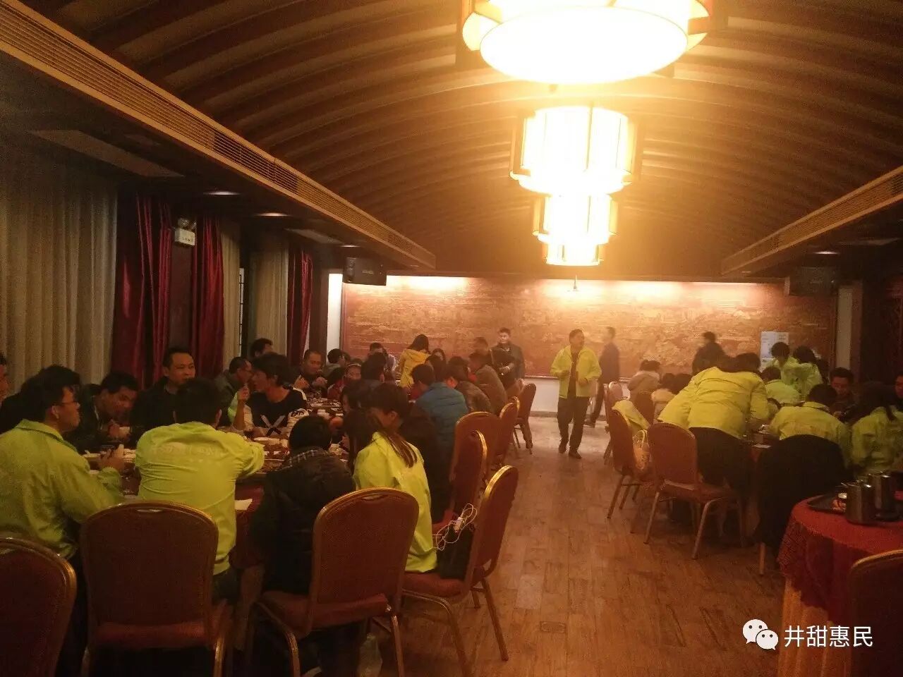 晚宴时大家其乐融融,梁先生正在宣布抽奖马上开始...