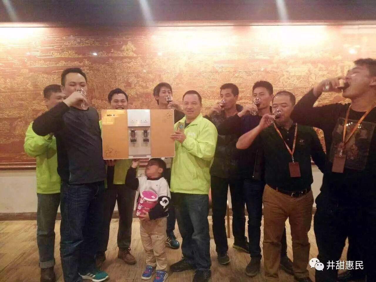 中奖后的代理商与大家举杯合影